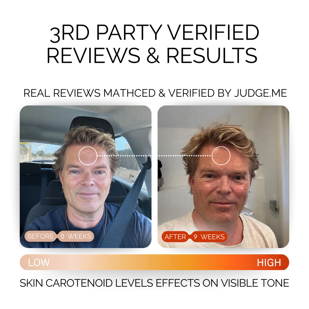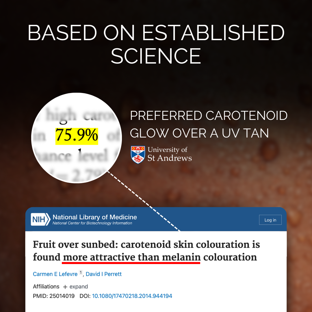 Carotenoid coloration is subtle and natural, which is why it's preferred 3 to 1 over sun tan in blind comparison studies.*