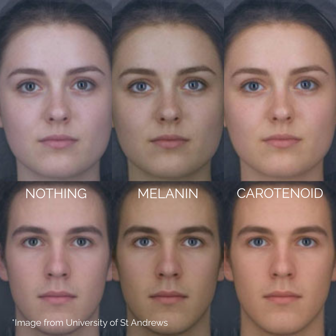 Studies consistently show people prefer carotenoid-based skin coloration over melanin-based tanning. Your skin is literally advertising your nutrition, and people notice."